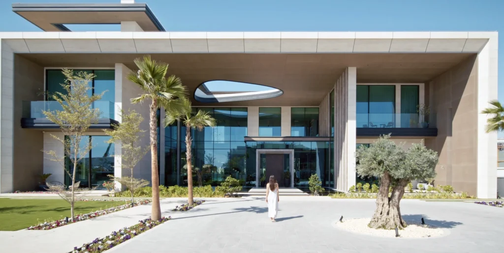 The villa’s grand glass façade and floating staircase create a dramatic architectural statement while inviting natural light throughout the interior. Designed to blur boundaries between inside and outside, the home offers a lifestyle centered on openness, comfort, and refined luxury. MWM Studio’s interior design enriches the space with modern textures and sophisticated detailing.
